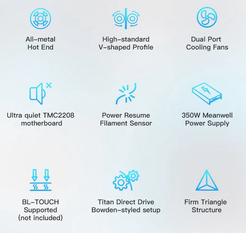- Slicing software: Support for Cura\Repetier-Host\Simplify 3D