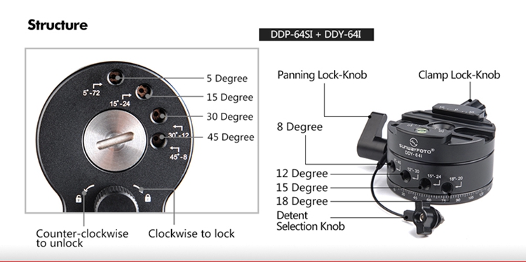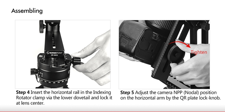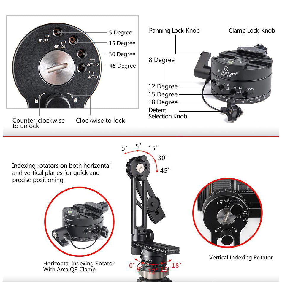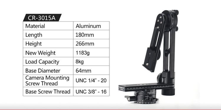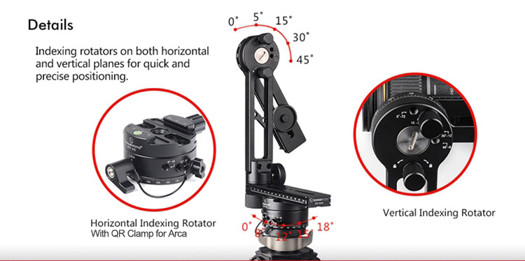 CR-3015A is an advanced, compact-sized, panoramic head with integrated adapter for Nadir, for 360° spherical panoramas. It’s elaborately machined from aircraft grade aluminum alloy and hard-anodized, offering lightweight and durability at the same time. Both the horizontal rotator and the vertical rotator are indexed and provide a selection of four detent (click) stop options each, for optimal accuracy and convenience in panorama photography.