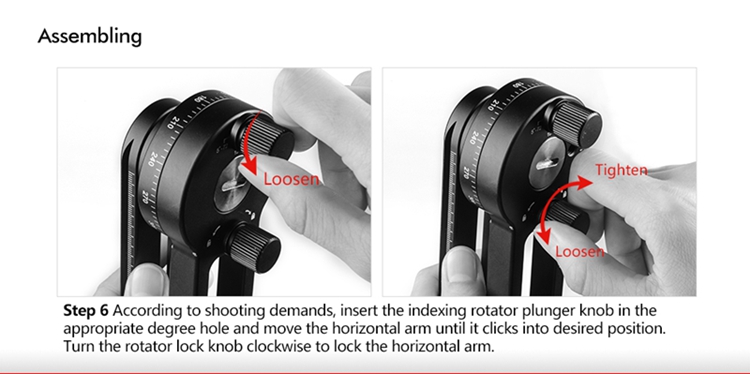 - User manual, bushing, wrench, cleaning cloth, indexing rotator with QR clamp, horizontal rail, horizontal rail lock-knob are included in the package.