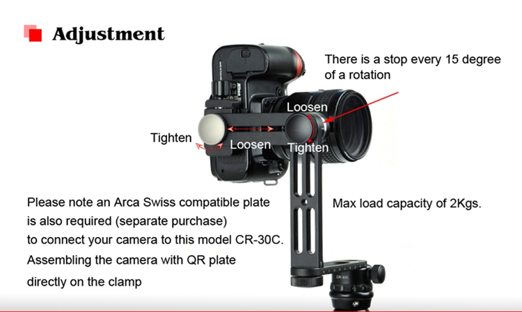 Based on the original CR-30, to make it more convenient, we include a clamp in the CR-30C, and enlarge the horizontal plate by 19mm, which provides a bigger range for the positioning of the camera.