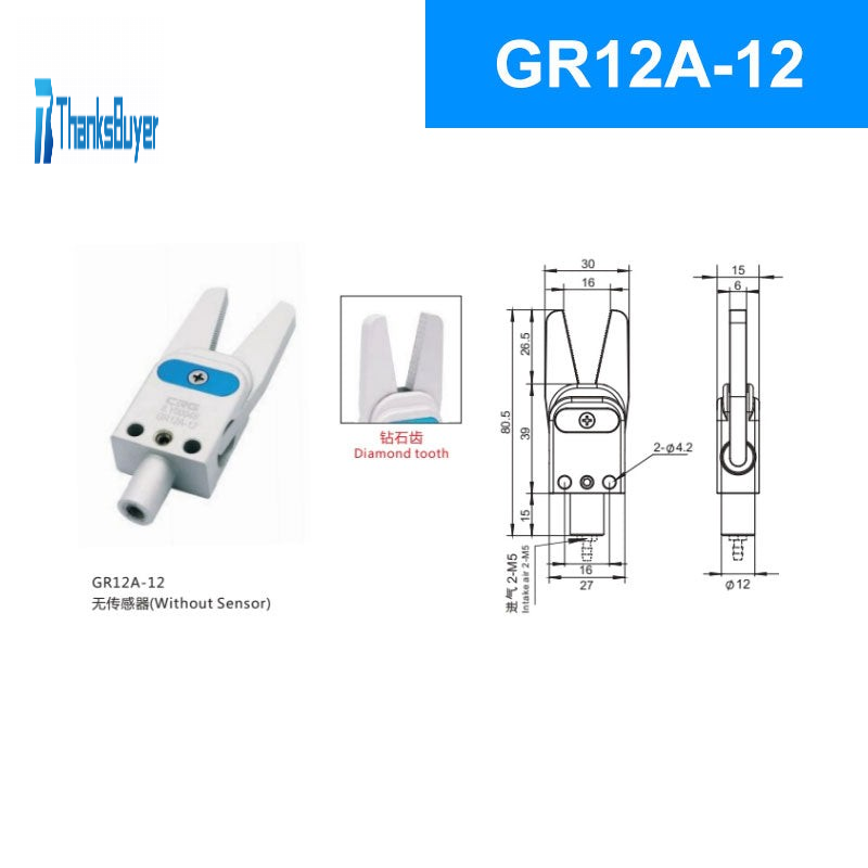 CRG GR12A-12 28N Mechanical Arm Mini Sprue Gripper Pneumatic Clamp without Sensor (Diamond-shape Tooth)