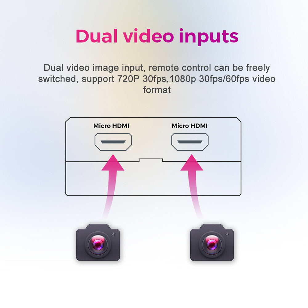 - Dual-channel video input can be switched via the controller. It supports video in 720P 30fps, and 1080P 30fps/60fps.