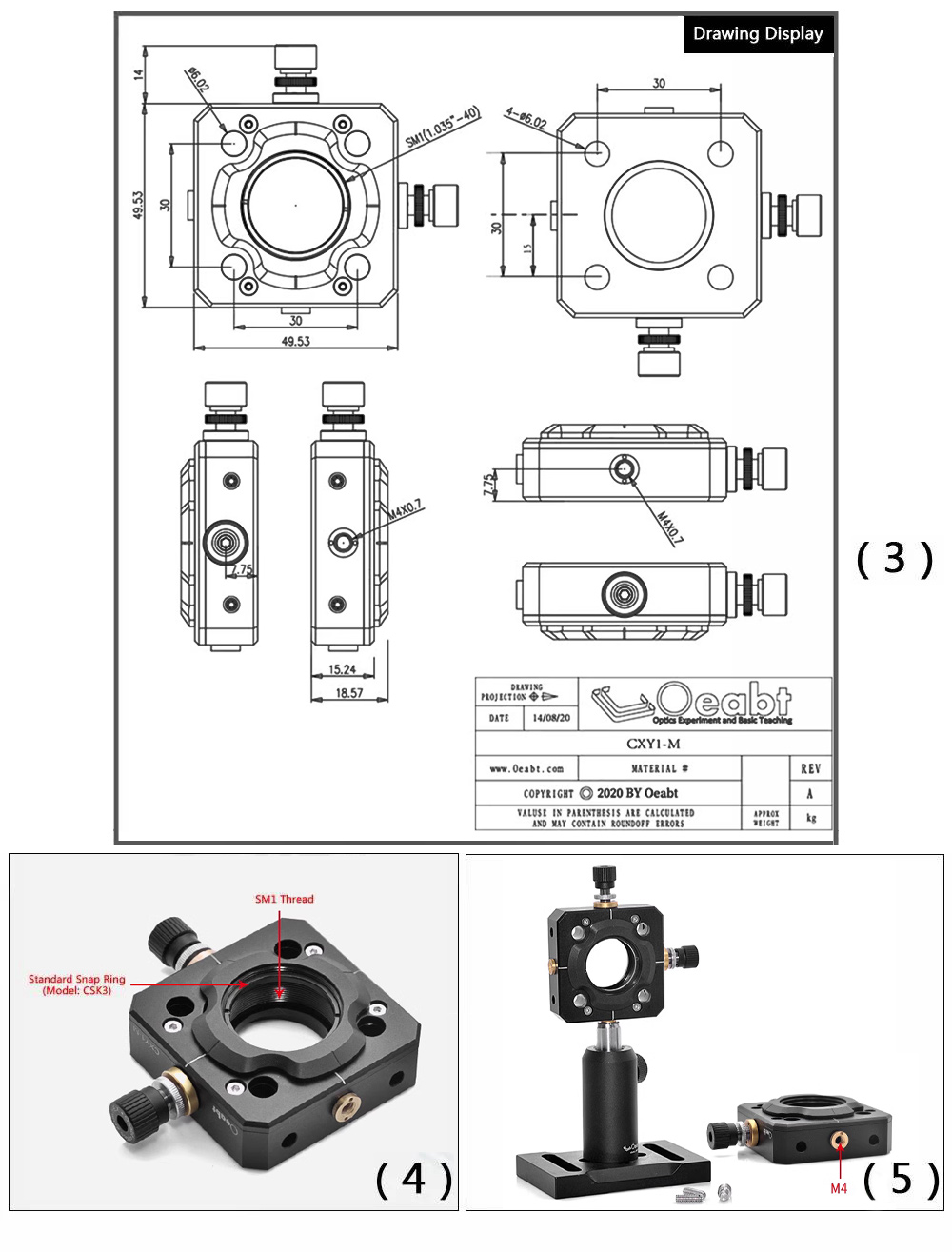 - SM1 (1.035"-40) thread, compatible with our SM1 lens tube series products.