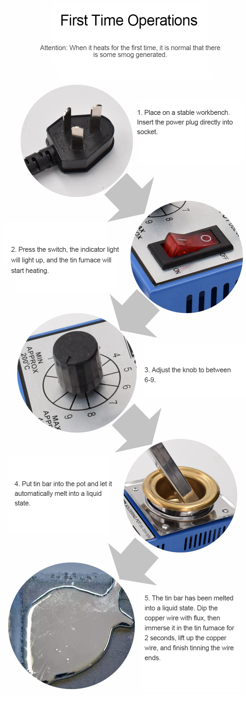 - It is not recommended to use acidic flux/solder paste. Acidic substances will accelerate the corrosion of the tin pot. No-clean flux is recommended.
