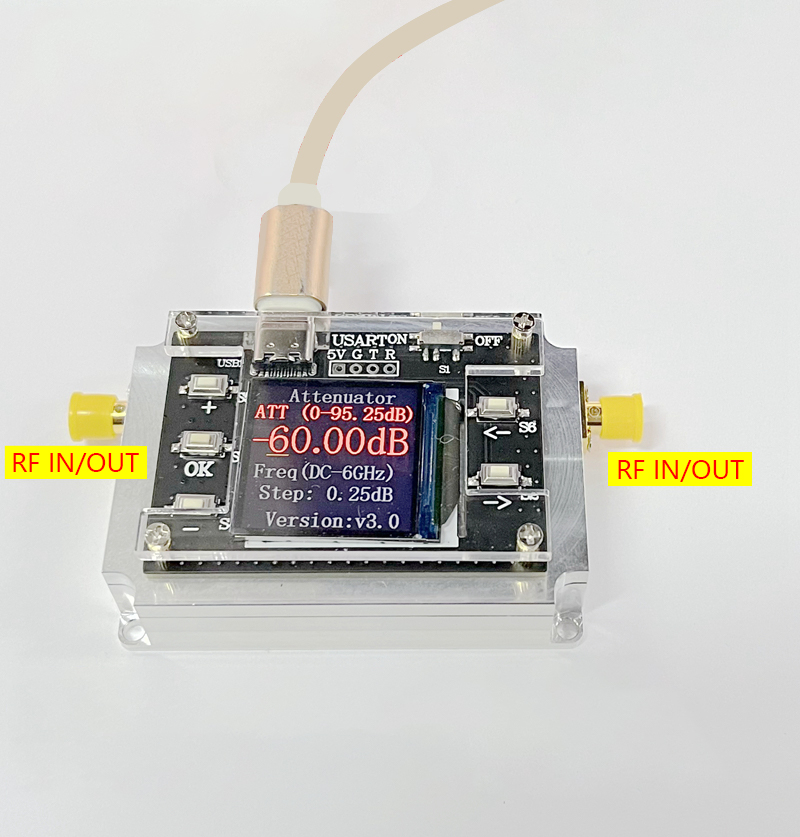 DC-6GHZ 90DB Programmable Attenuator Module RF Attenuator Step 0.25DB 1.3" OLED Display CNC ATT-6000V3.0