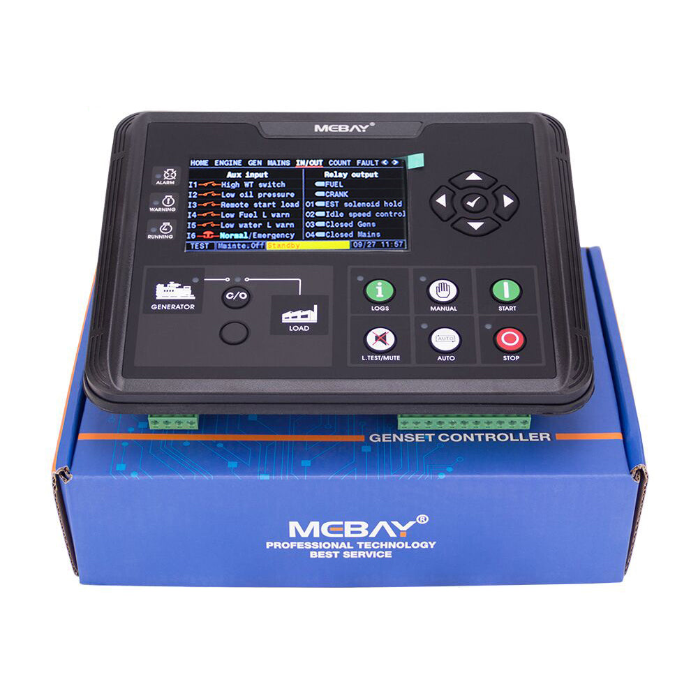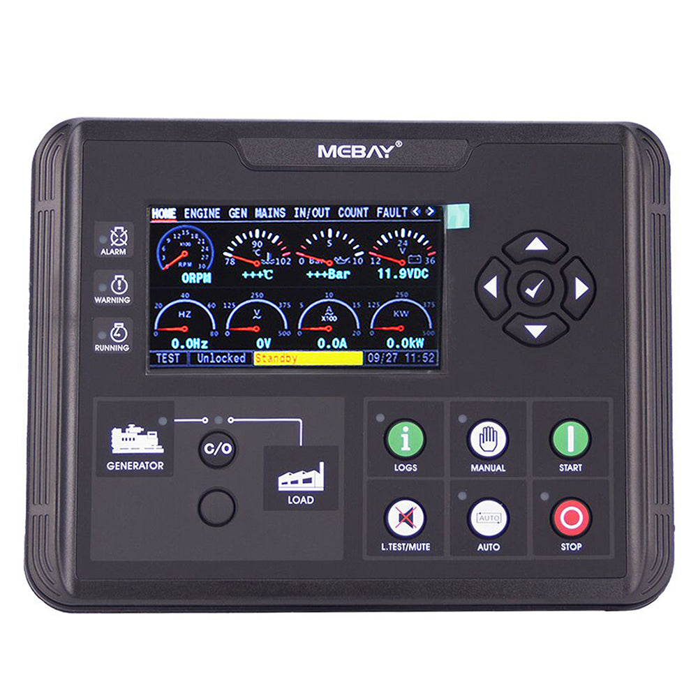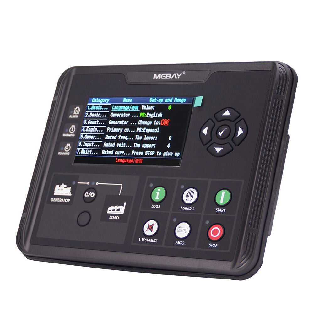 This controller uses a 4.3-inch TFT color large-screen LCD to display related parameters of generator set, a new and original UI design, and parameters are displayed by analog pointer and digital. The LCD screen can display multiple current fault states at the same time, and can effectively implement protective shutdown when the generator set is not working properly.