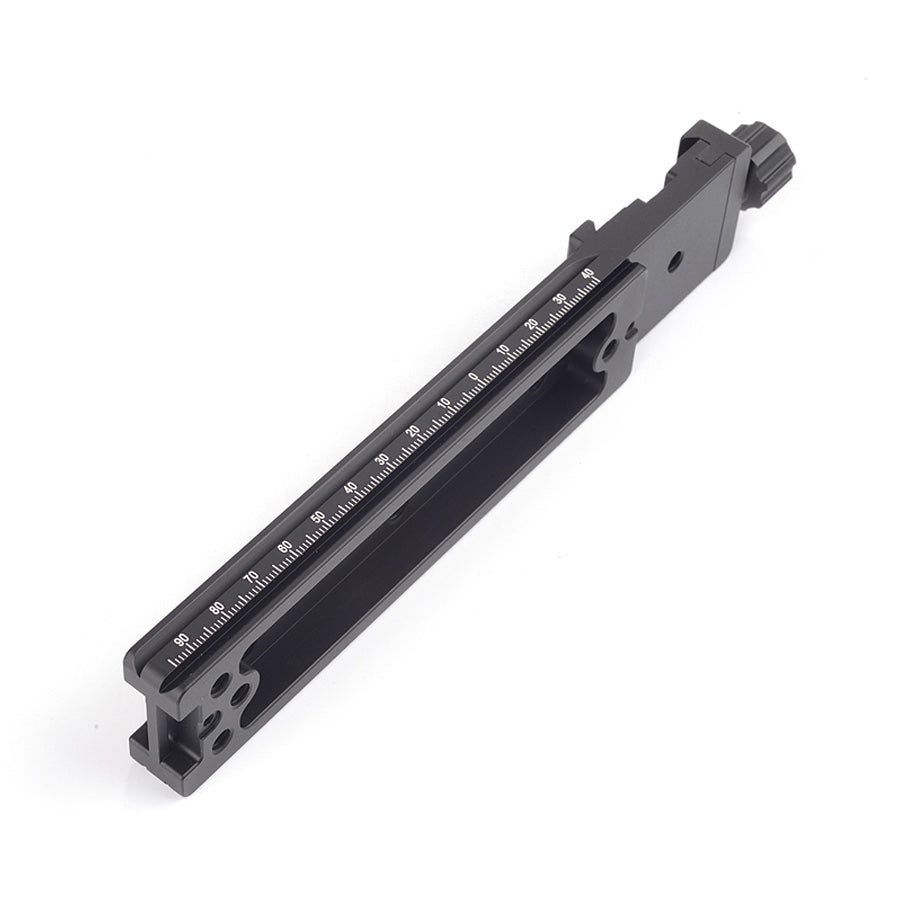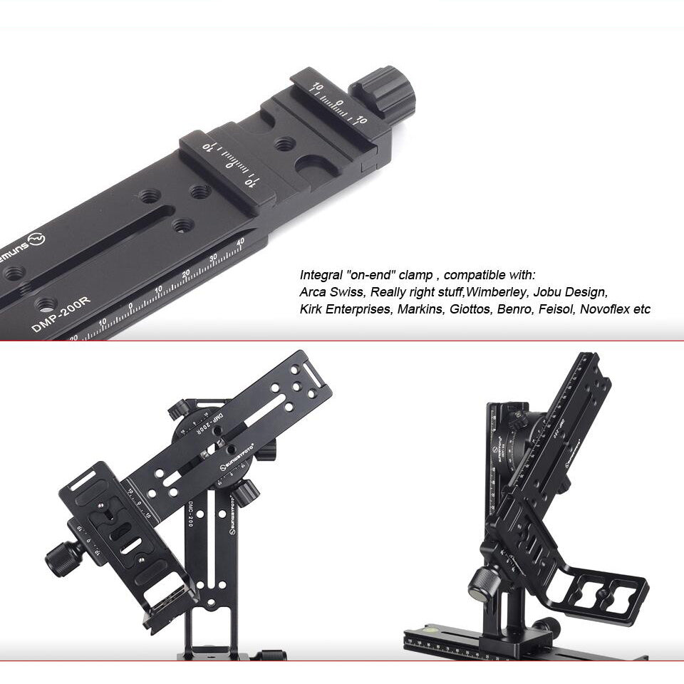 DMP-200R Multi-Purpose Rail Nodal Slide with screw-knob clamp, CNC cutting machine from light weight aircraft-grade aluminum, stain anodized surface finish for better abrasion and corrosion resistant. Suitable for all Arca-Swiss style plates.