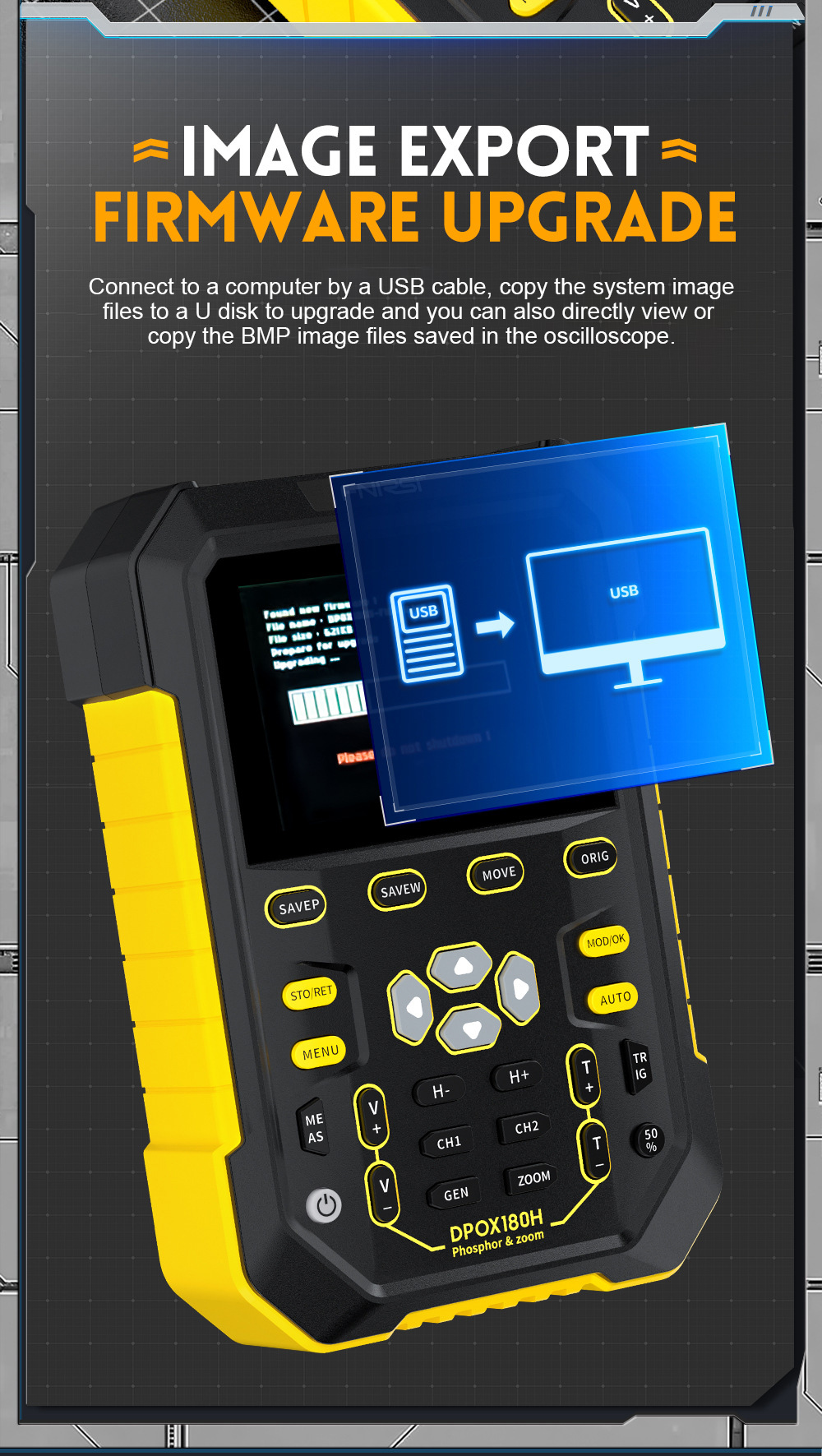 DPOX180H Yellow US 500MSPS 2CH Digital Phosphor Oscilloscope Signal Generator for Automobile Repairs