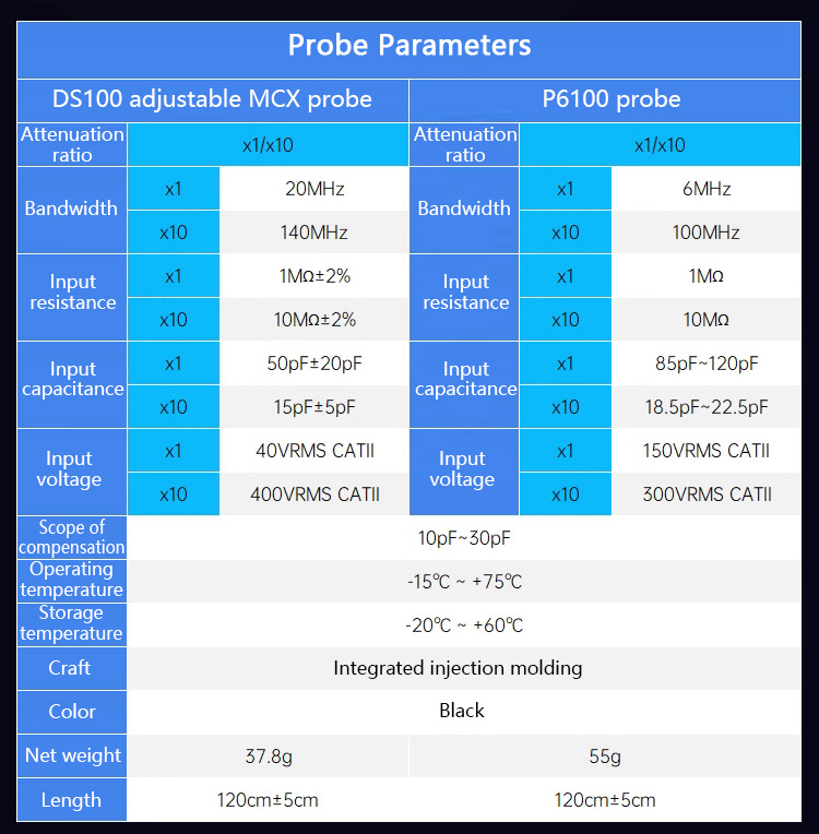 DS100 250MSa/s 50M 2 Channel Oscilloscope Mini Size + Blue Protective Sleeve + 2 P6100 Probes