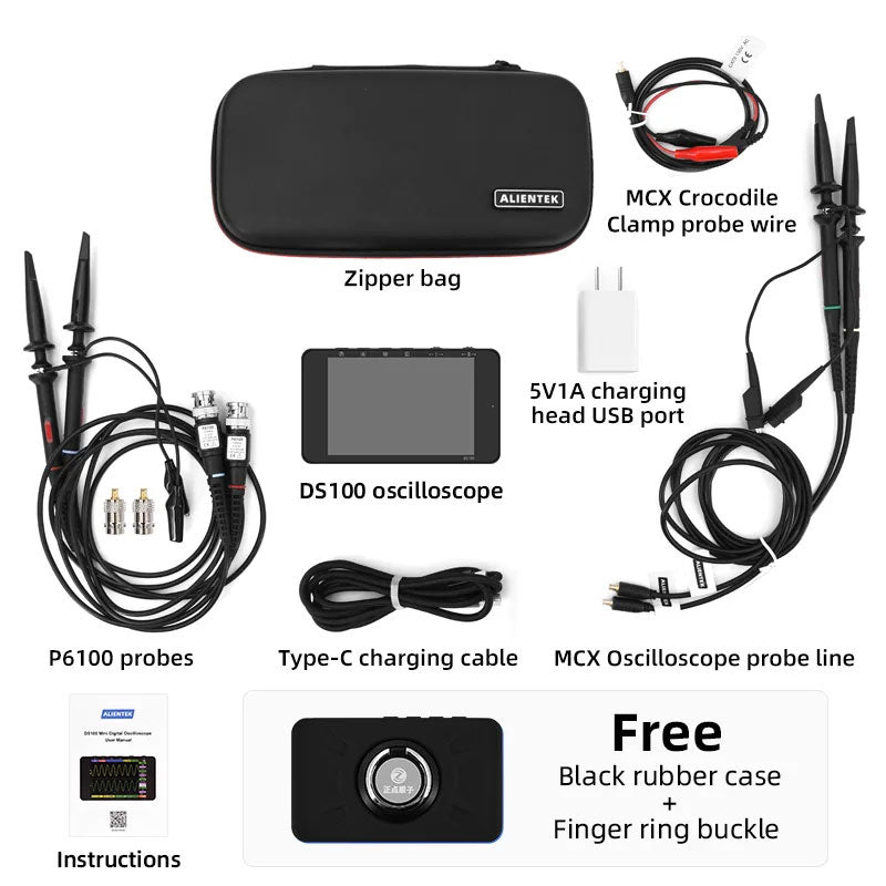 DS100 250MSa/s 50M 2 Channel Oscilloscope Mini Size with Black Protective Sleeve + 2 P6100 Probes