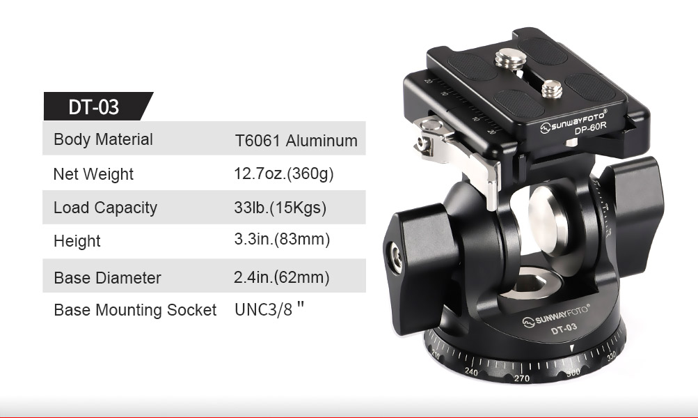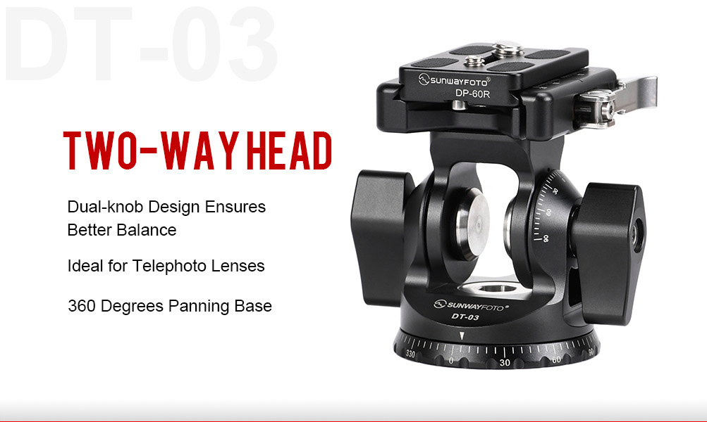 DT-03 Two-way Head Tripod 360 Degrees Panning Base for Telephoto Lenses with High Load Capacity