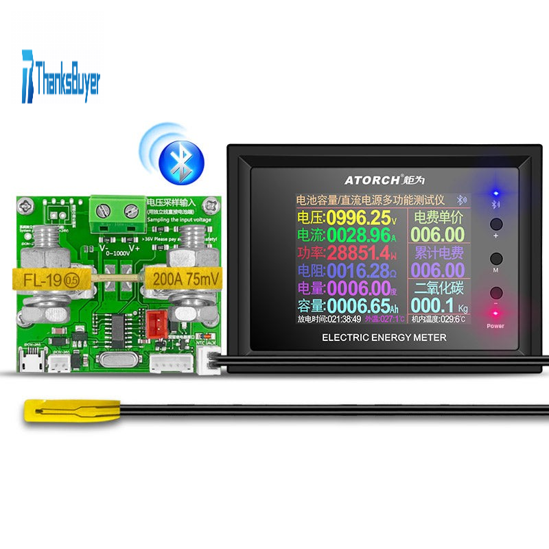DT24 Digital Display Bluetooth DC Power Meter Voltmeter Ammeter Battery Capacity Tester w/ 200A Shunt