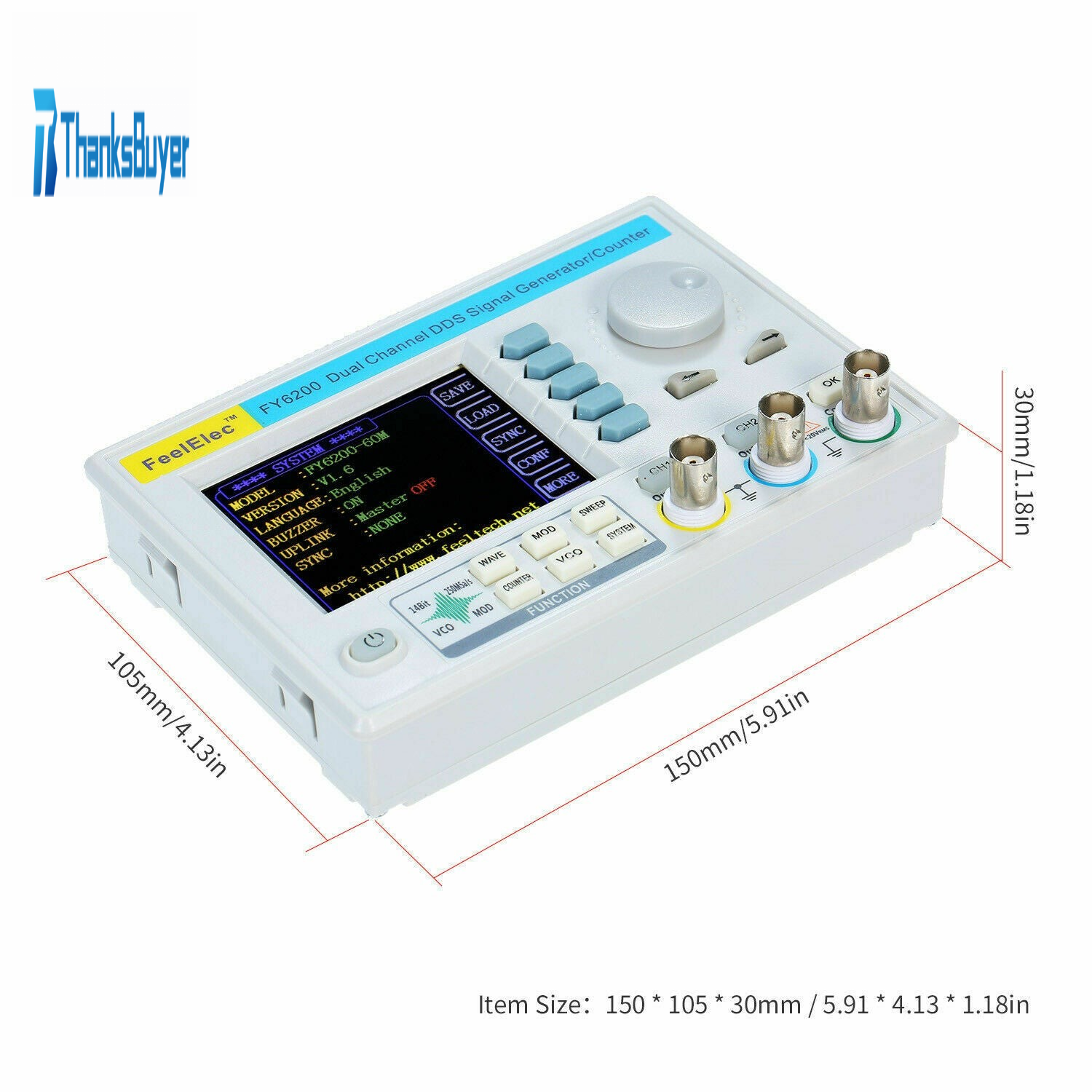 Dual Channel DDS Function Signal Generator Frequency Counter w/ 3.2" LCD FY6200-30M 30MHz
