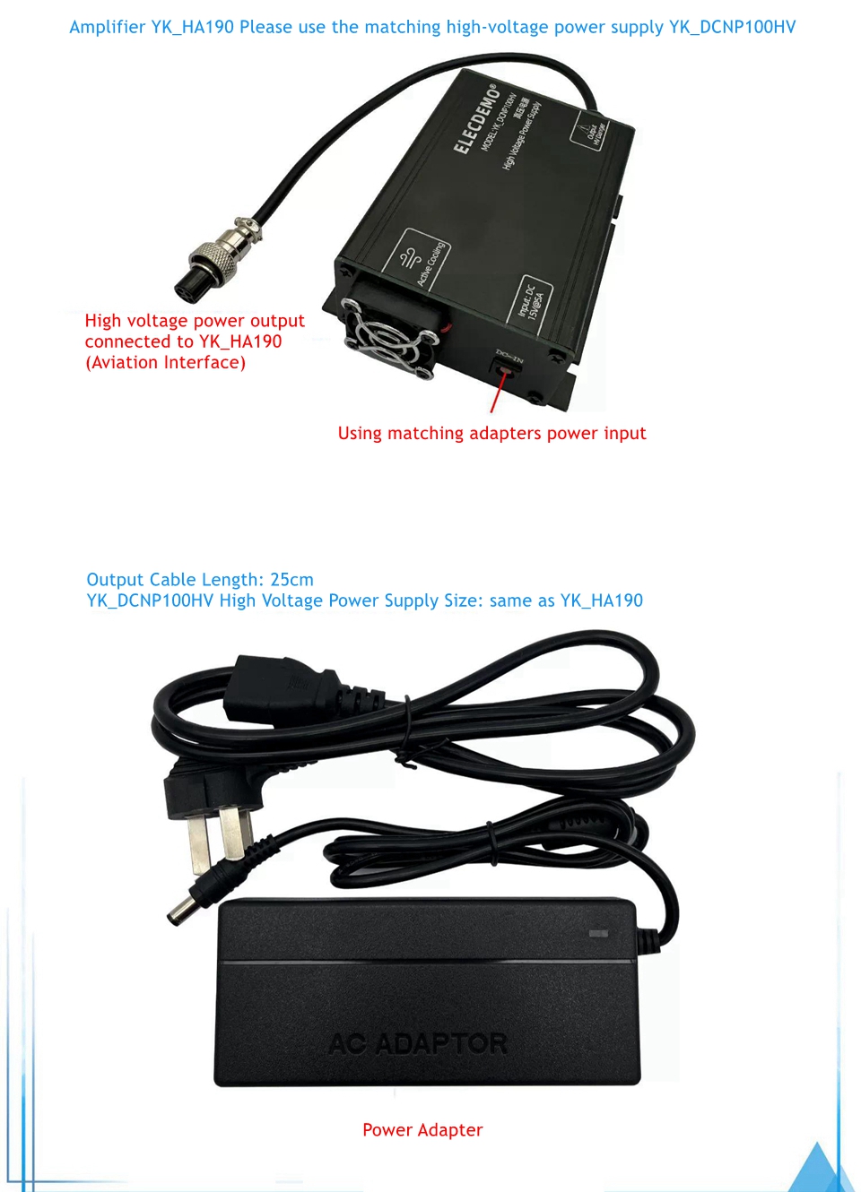 - Power supply: YK_DCNP100HV, please use the matching high-voltage power supply for power supply