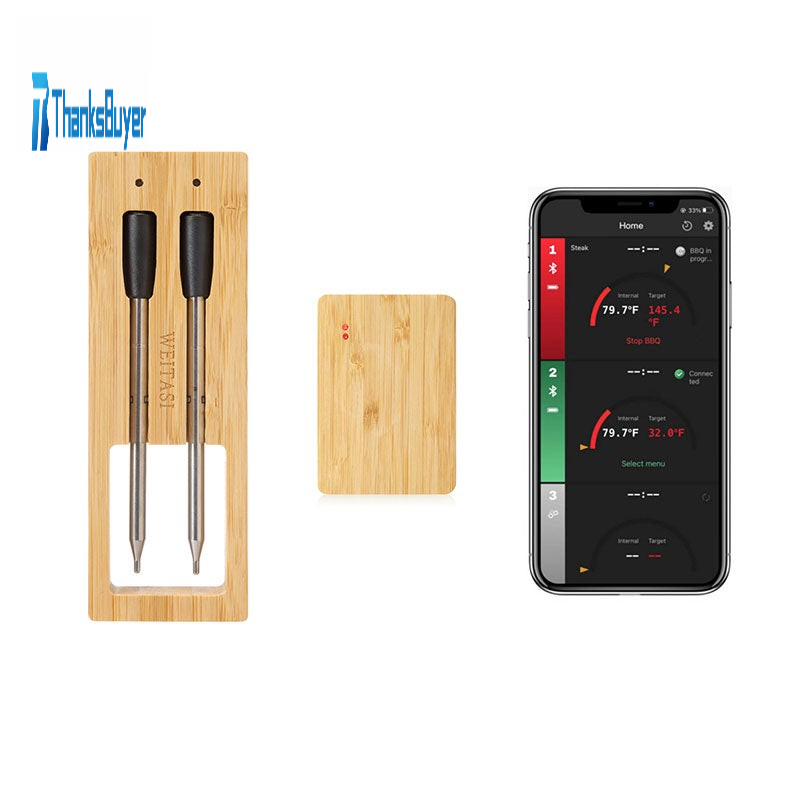 Dual Probe Bluetooth Food Thermometer Wireless Meat Thermometer w/ Separate Repeater for BBQ Cooking
