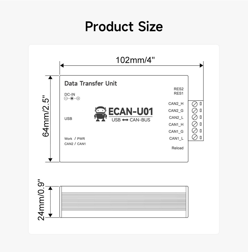 ECAN-U01 USB To CAN Adapter Converter CAN Bus Analyzer Data Transfer Unit 2-Way Isolated Transceiver