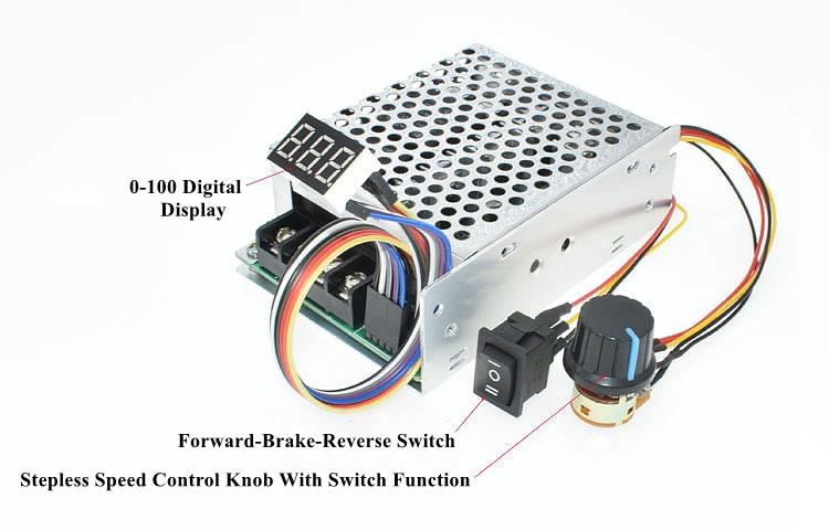 EQ839 40A DC Motor Speed Controller With Forward-Brake-Reverse Switch Digital Display Speed Knob
