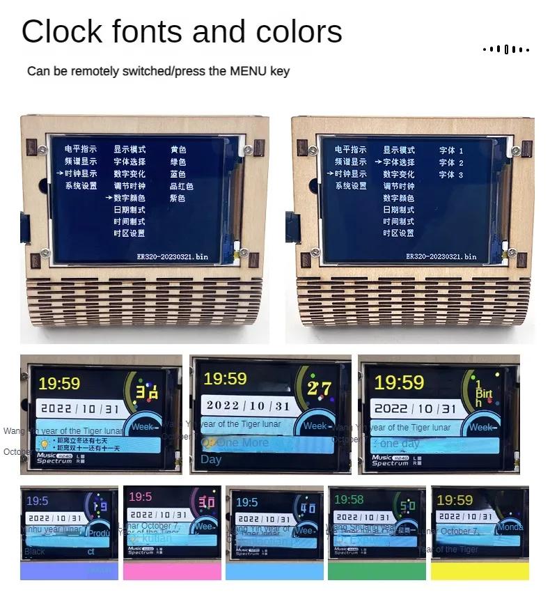 ER320 LCD Level Light Audio Spectrum Rhythm Light High Precision Festival Countdown Clock Support EN/CN Switch