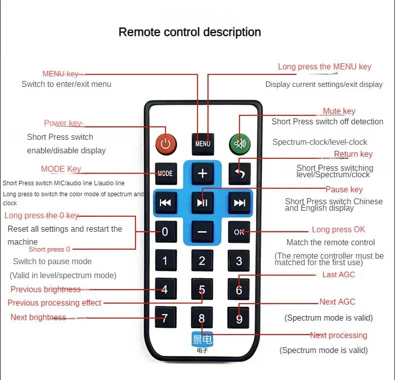 - Note: For the first time using, you need to press and hold the "OK" button to match the remote control, otherwise the remote control cannot be used.