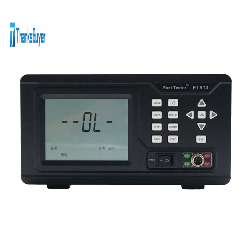 - ET51X series DC low resistance tester is suitable for measuring all kinds of DC medium and low value resistance, including transformer and other wound resistance, relay and other contact resistance, cable and other conductor resistance, connection resistance between metal components, fuse, conductive rubber and other types of DC resistance. Large-screen LCD display, clear display, measuring range of 20mΩ ~ 20kΩ (2MΩ optional), seven (nine optional) range can be adjusted, this product also comes with sorting function and sorting result output function, can be used for pipeline testing. At the same time, it also supports interface communication and control, and standard HANDLER and RS232 interface can be used for PC, PLC and other upper computer communication.