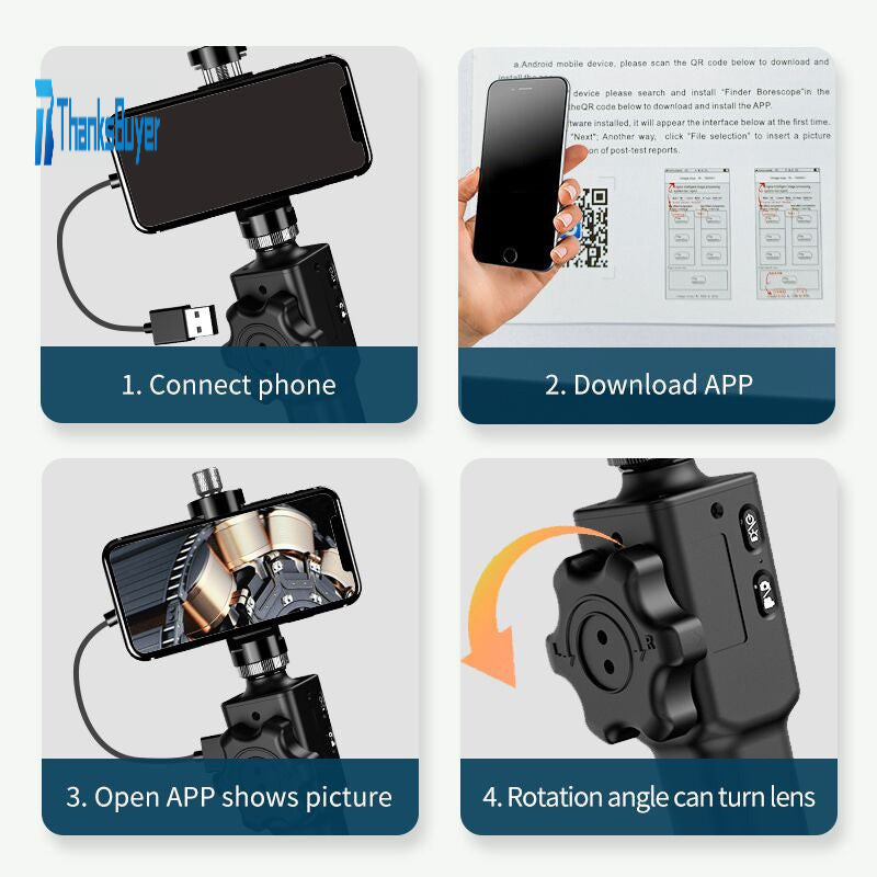 F408A 2MP Industrial Endoscope Borescope 8.5MM Rotatable Lens 1M/3.3FT Cable For Android IOS Phones