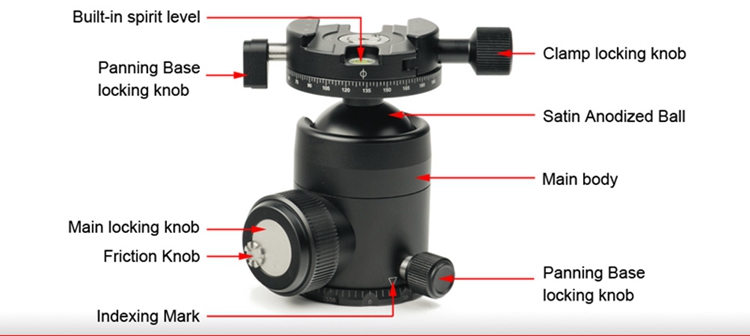 FB-44IIDDHX Tripod Ball Head Panoramic Tripod Head Load Capacity 30KG with Panning Clamp DDH-05N