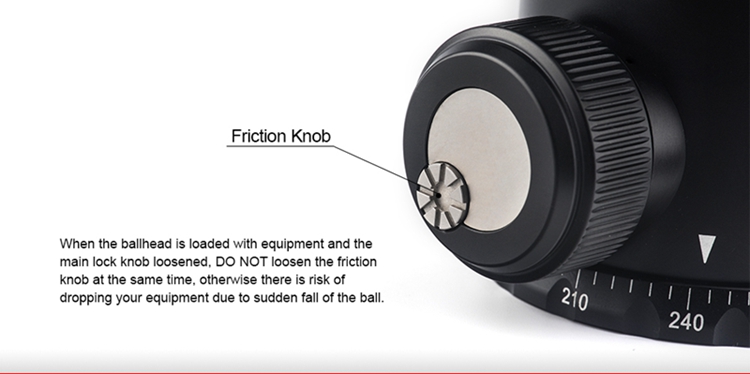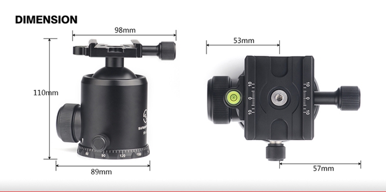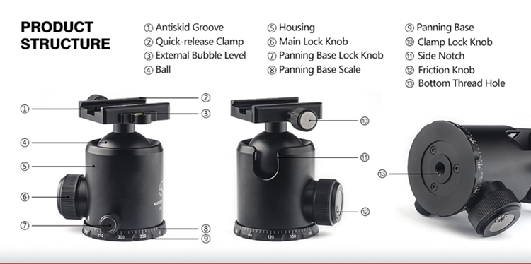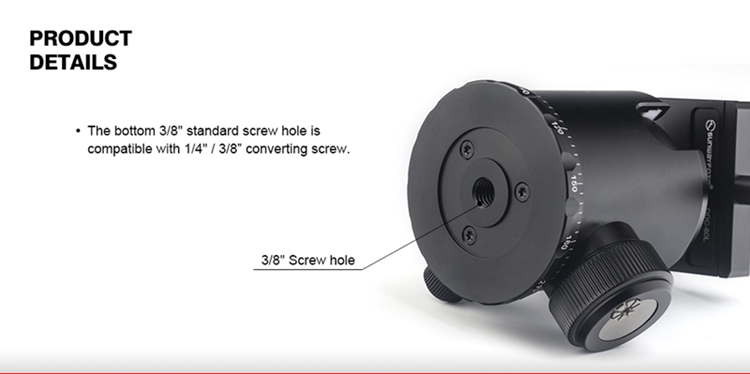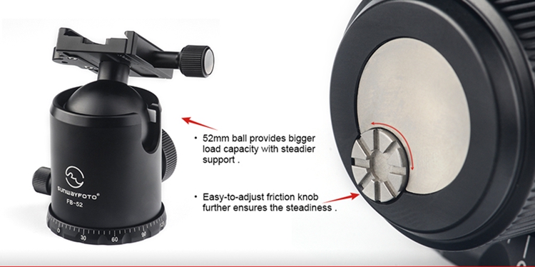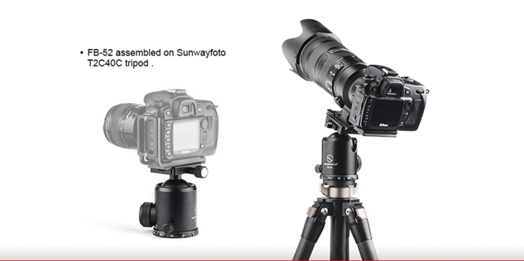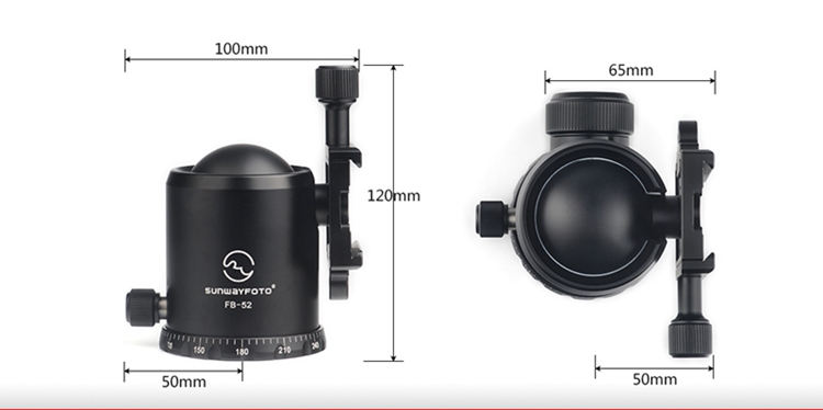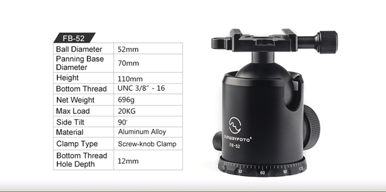FB-52 360 Degree Panoramic Tripod Head Tripod Ball Head Load Capacity 20KG with Screw Knob Clamp