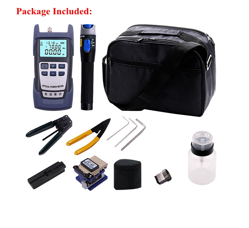 Fiber Optic Tool Kit Assembly w/Fiber Cleaver 5KM Visual Fault Locator Optical Power Meter Carry Bag