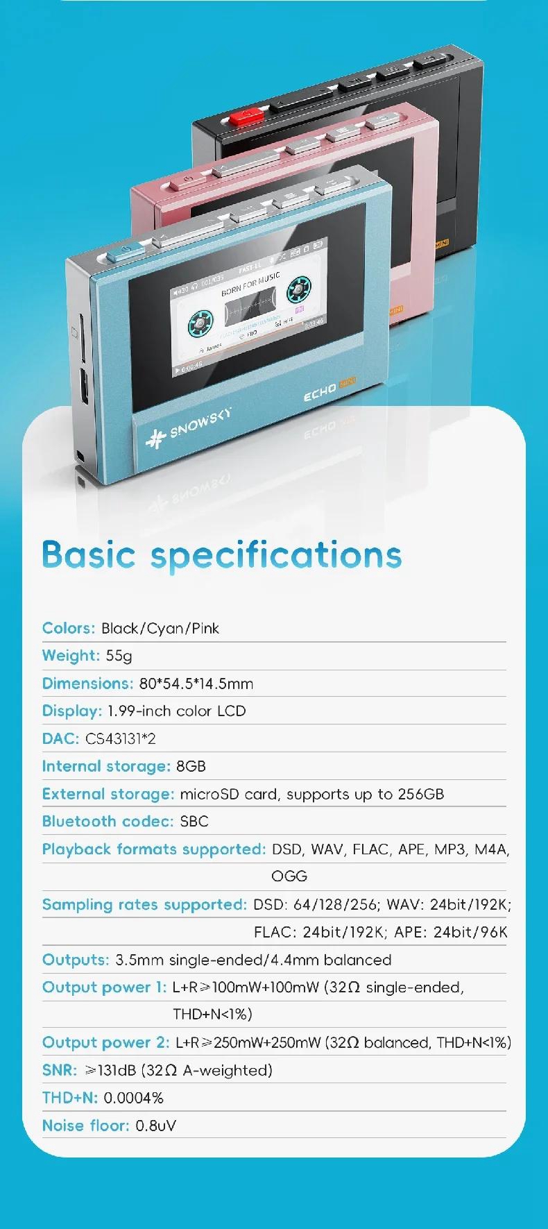FiiO Black ECHO MINI Portable Lossless Music Player Bluetooth Audio Player Mini MP3 Support DSD Hardware Decoding