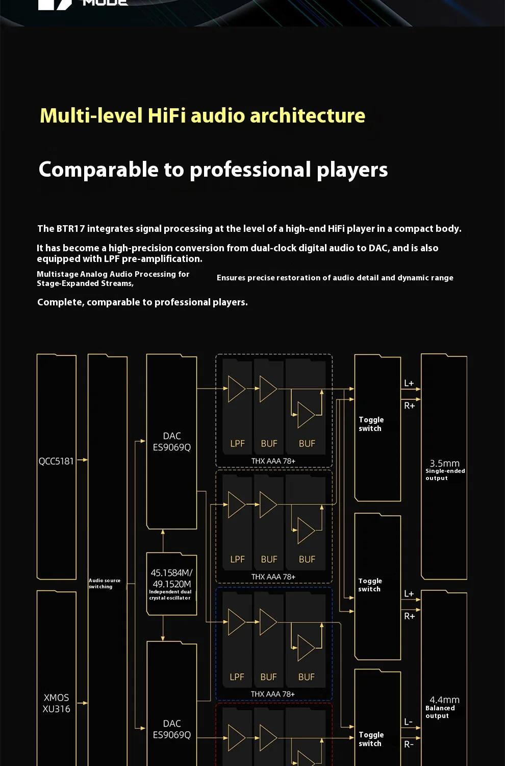 FiiO Blue BTR17 Portable Bluetooth5.4 Audio Decoder Headphone Amplifier Audio Receiver Support for LDAC