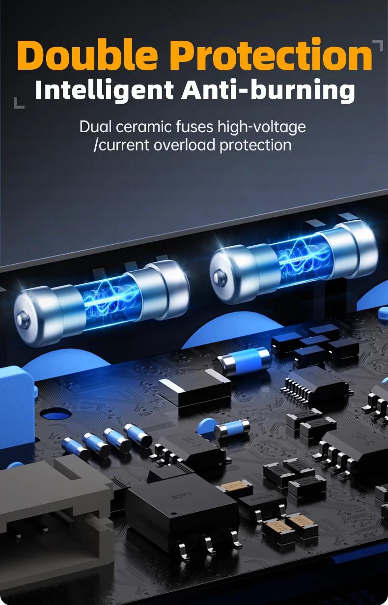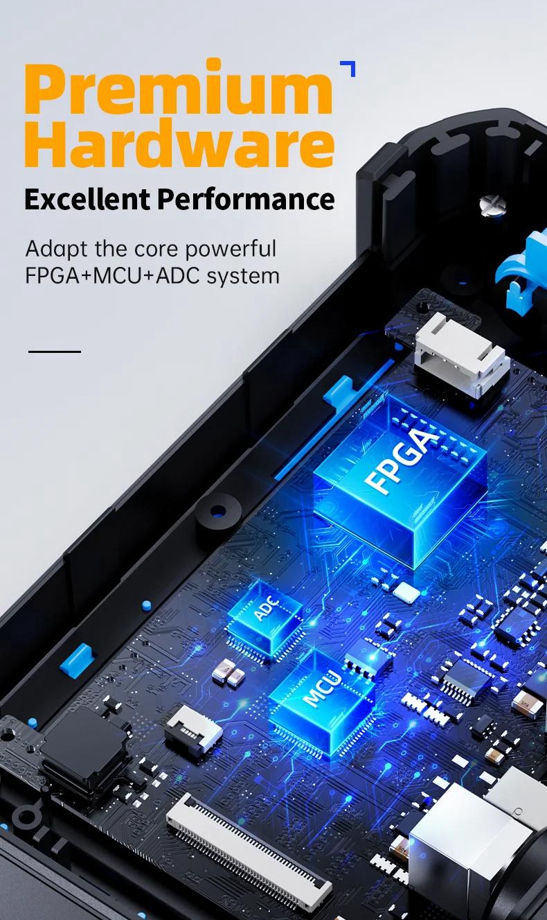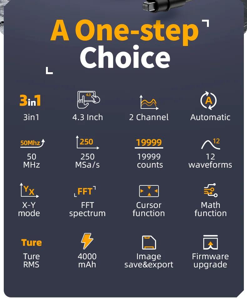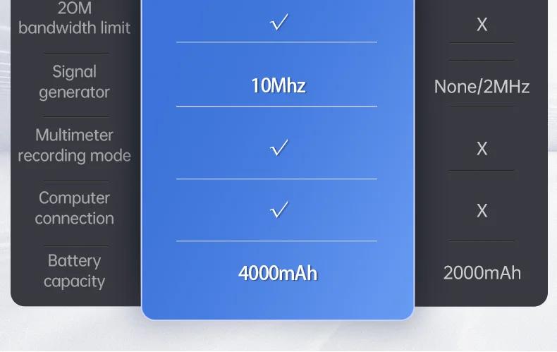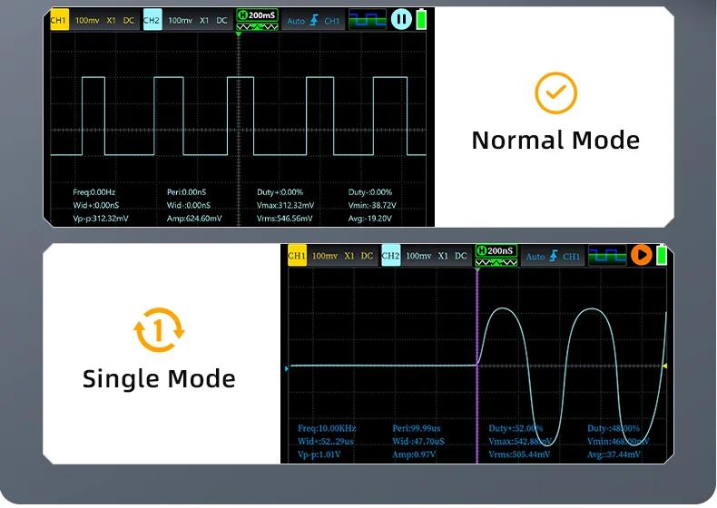 - It has a sampling rate of 250MS/s, an analog bandwidth of 50Mhz, a built-in high-voltage protection module, and supports a maximum peak voltage measurement of ±400V; supports waveform screenshots.
