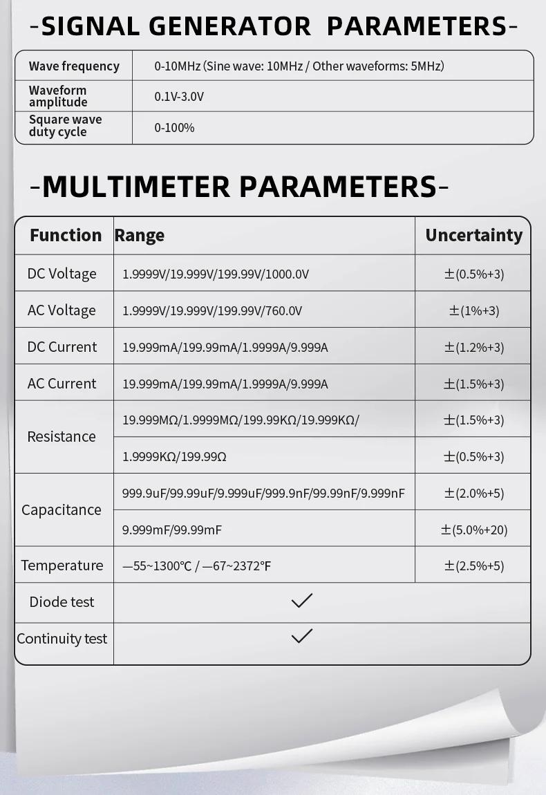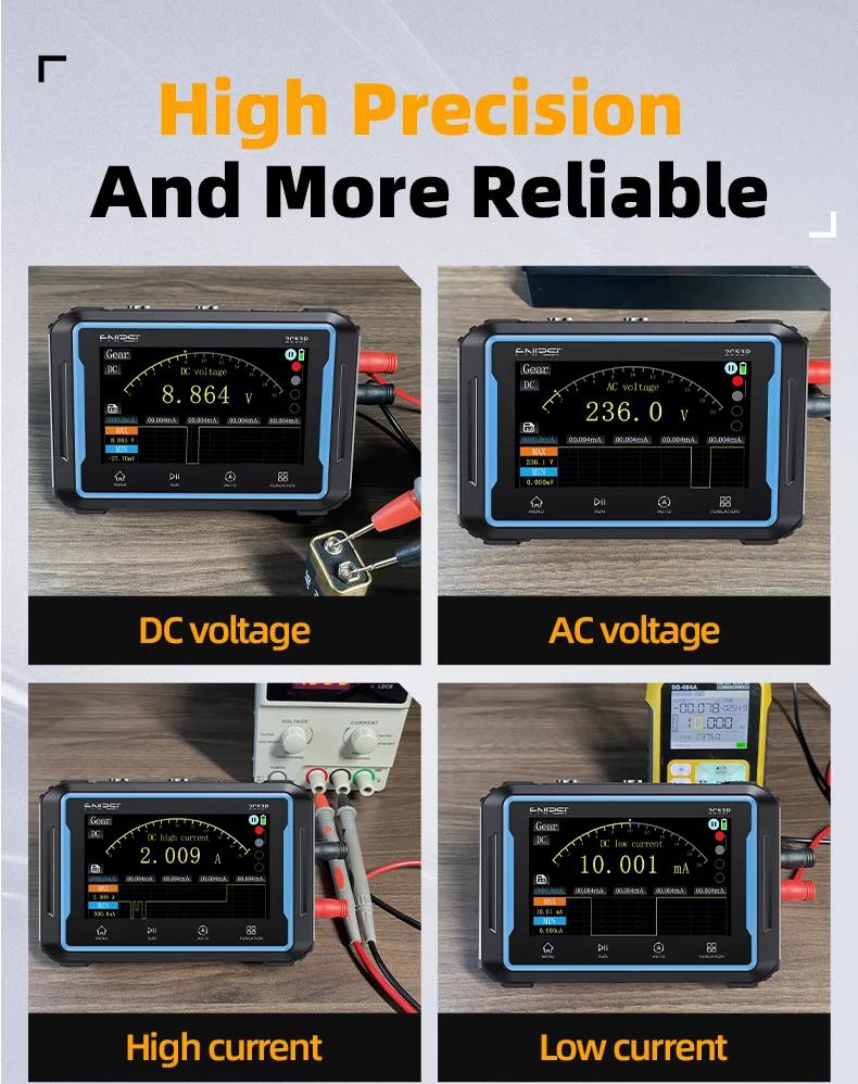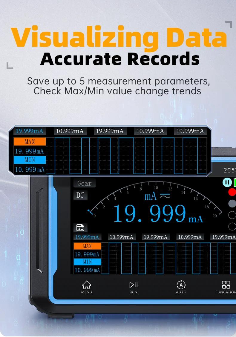 - Save and view to facilitate secondary analysis. The multimeter function is 4 and a half digits and 19999 points of true RMS, supporting AC and DC voltage and current measurements, capacitance, resistance.