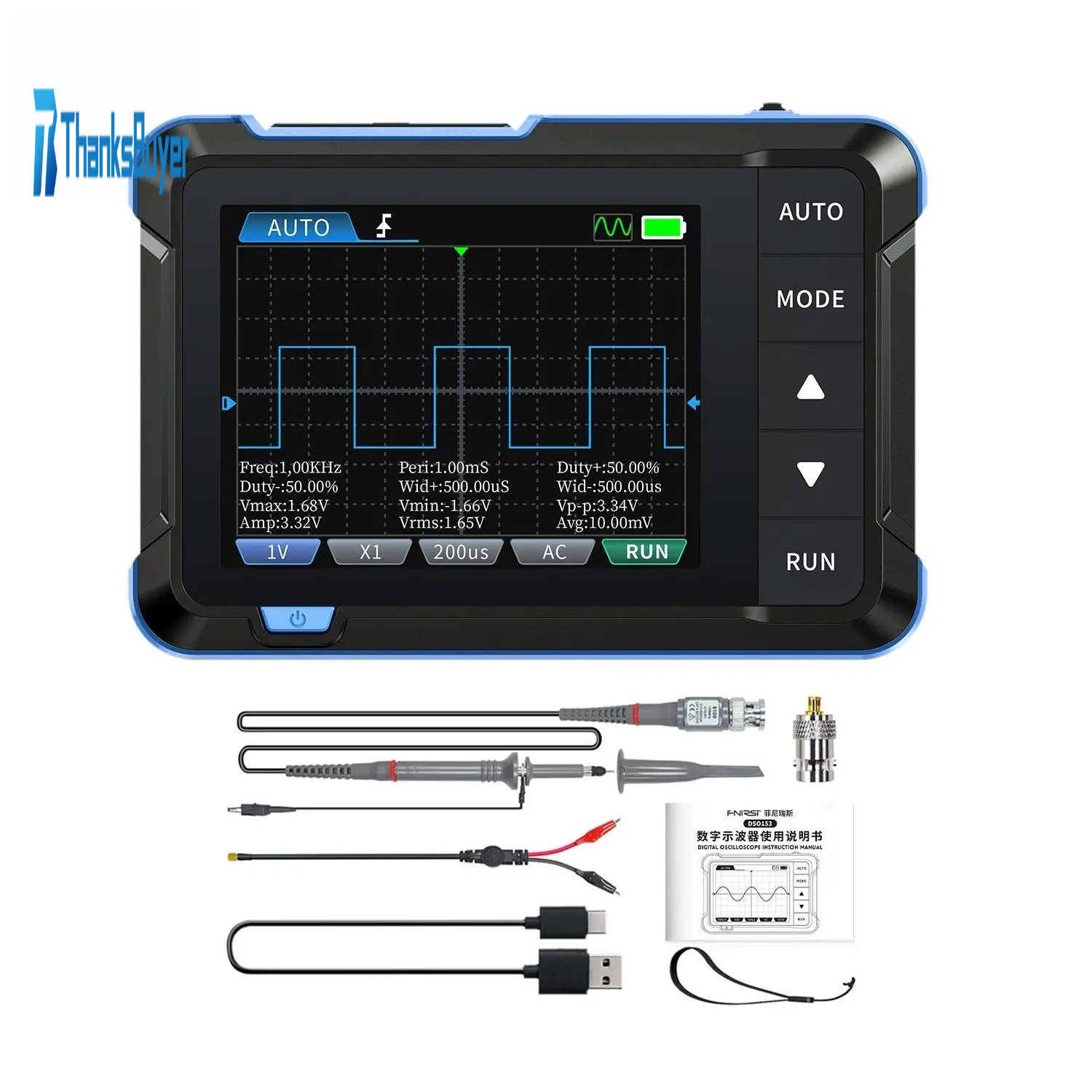 FNIRSI DSO153 Advanced Version Portable 2-IN-1 1MHz Bandwidth Digital Oscilloscope Signal Generator with P6100 Probe + Adapter