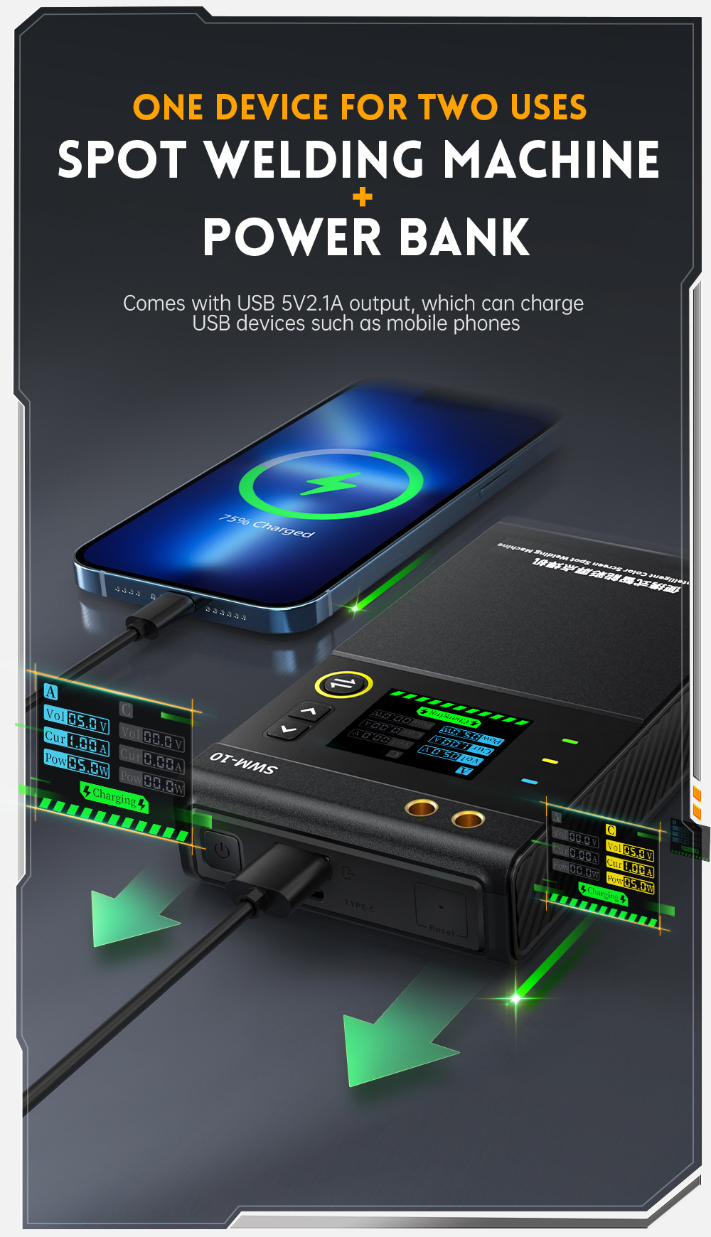 FNIRSI SWM-10 Professional Portable Handheld Spot Welder with 1.8-inch LCD Screen for Battery Spot Welding