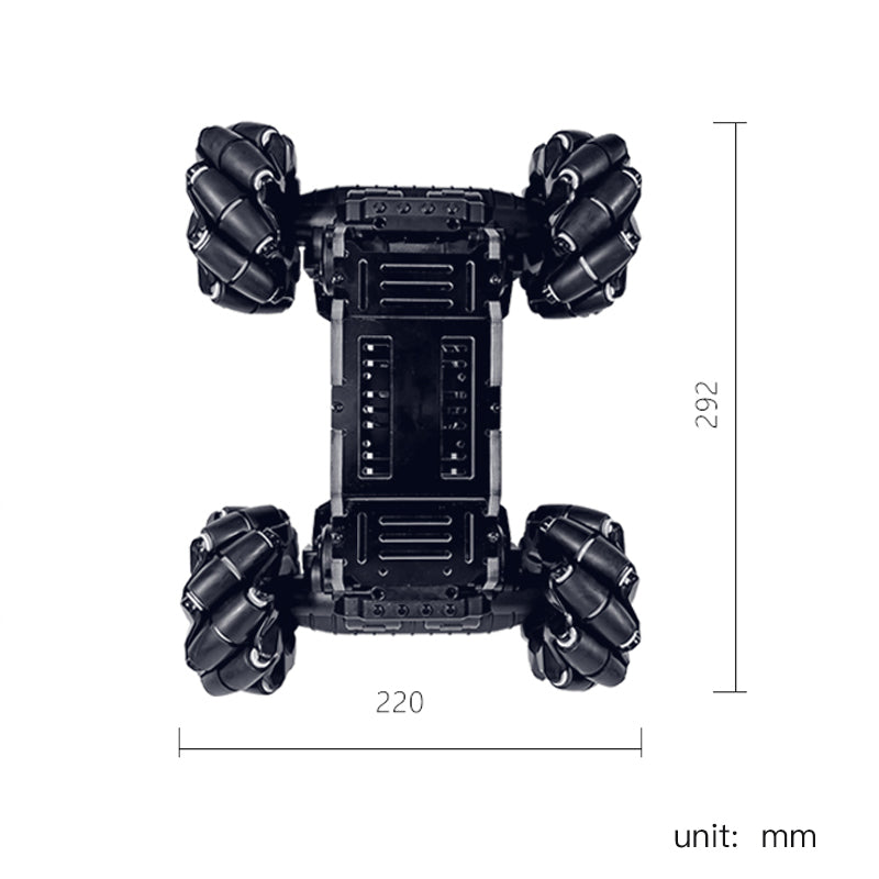 3. The Mecanum wheel chassis has large space and fast movement, 360° all-round moving, with DIY features.