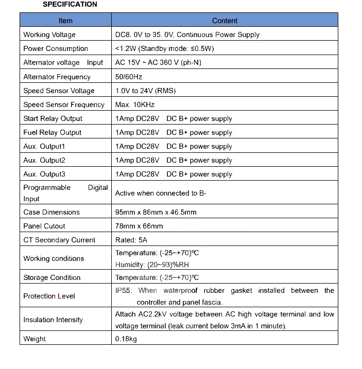 - 3 programmable relay output ports, which can set public alarm output, preheat output or idle speed control output;