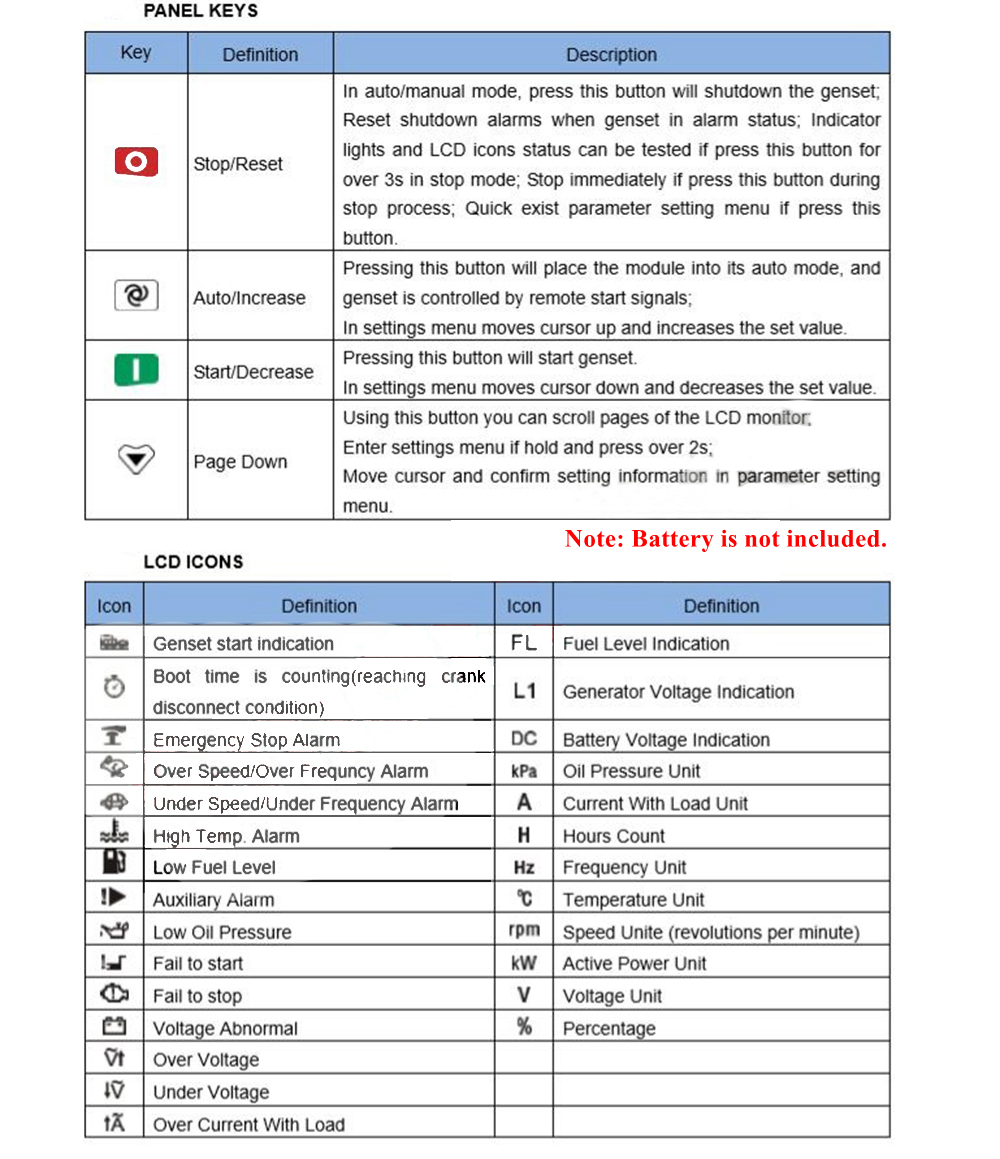 - 1 x Set of Genset Controller