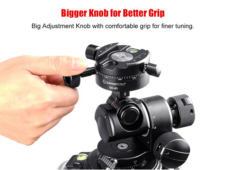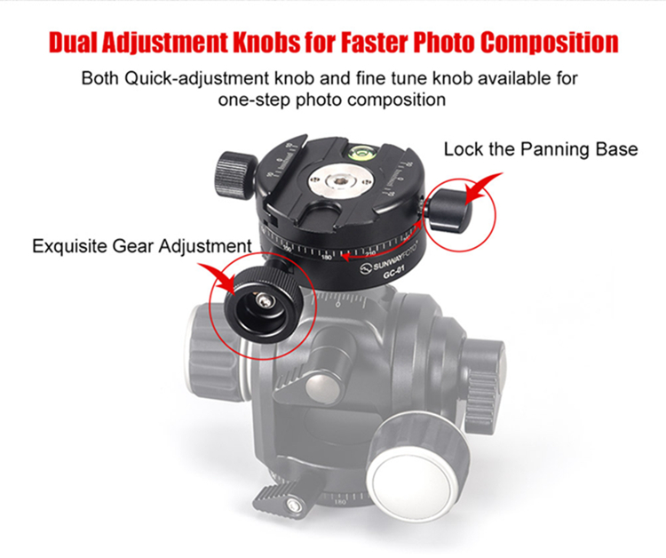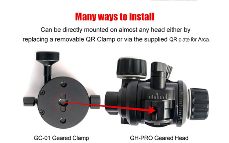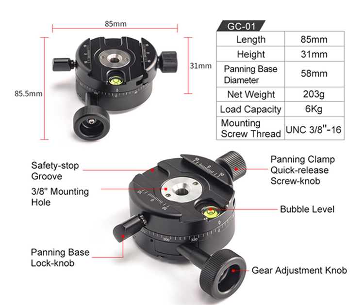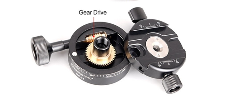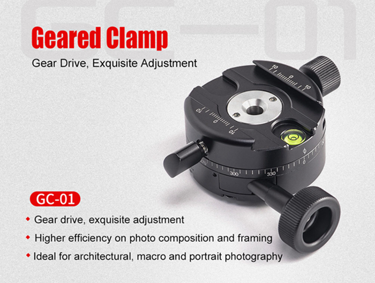 GC-01 is one gear drive 360 degrees panoramic clamp, it provides with quick-release adjustment as well as exquisite fine tune, ideal for professional architectural photographers, etc. This clamp will effectively increase the efficiency of photo composition as well as splicing afterwards. Working with geared head to carry out 3D full gear drive adjustment.