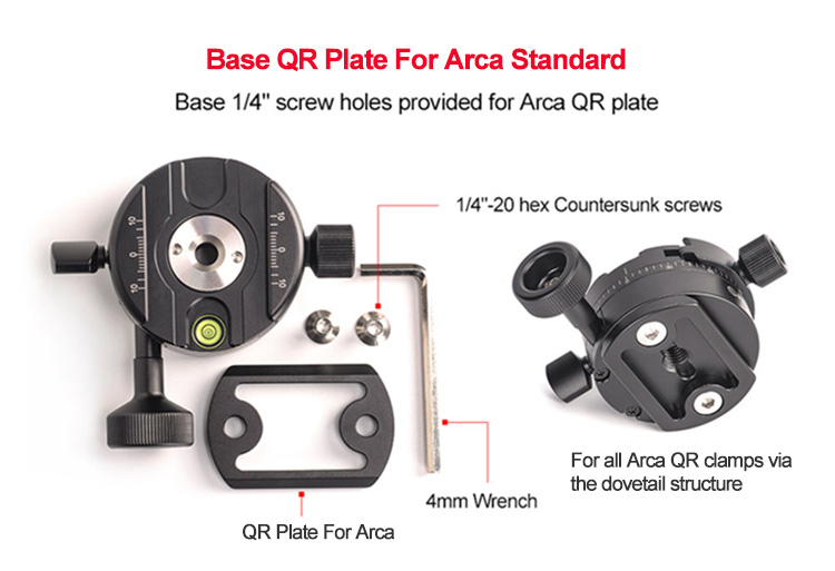Note: Cameras, ball heads, QR plates for Arca, geared heads, and other items pictured are not included, for demonstration purposes only.