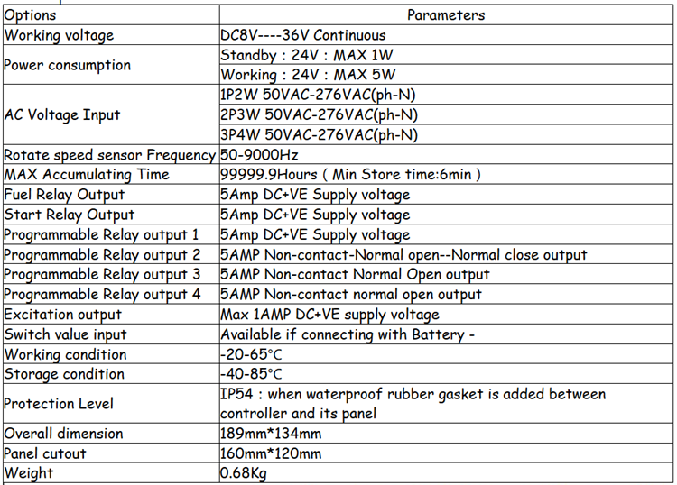 - Gather and display various engine and generator’s parameters. Adapt to 3P4W,1P2W,2P3W (120V/240V,50/60HZ)