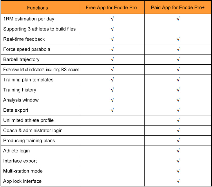APP for Enode Pro has more than 15 indicators, including barbell tracking.