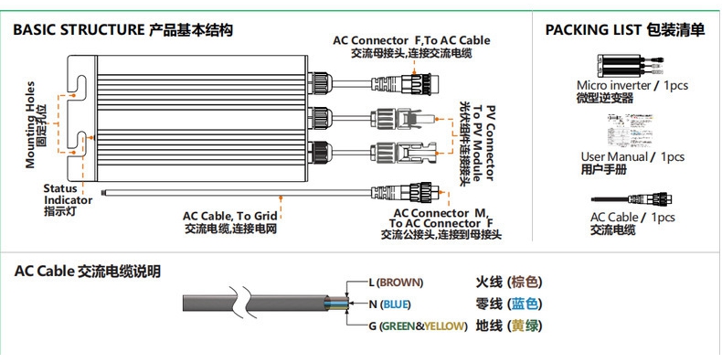 - Before use, please ensure that the open circuit voltage VOC and operating voltage VMP of the photovoltaic module comply with the input voltage and operating voltage range of this device.
