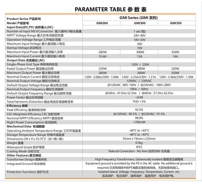 GMI-300 300W Micro Inverter Mini MPPT Tracking Intelligent Solar Inverter Single Phase Output 120V/230V