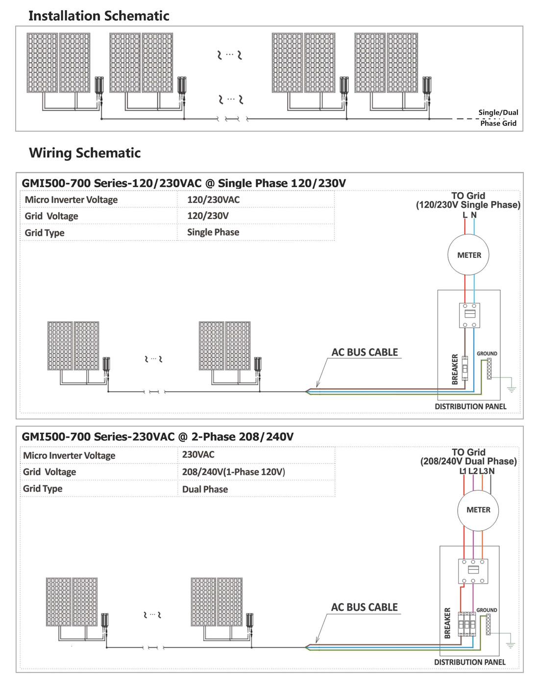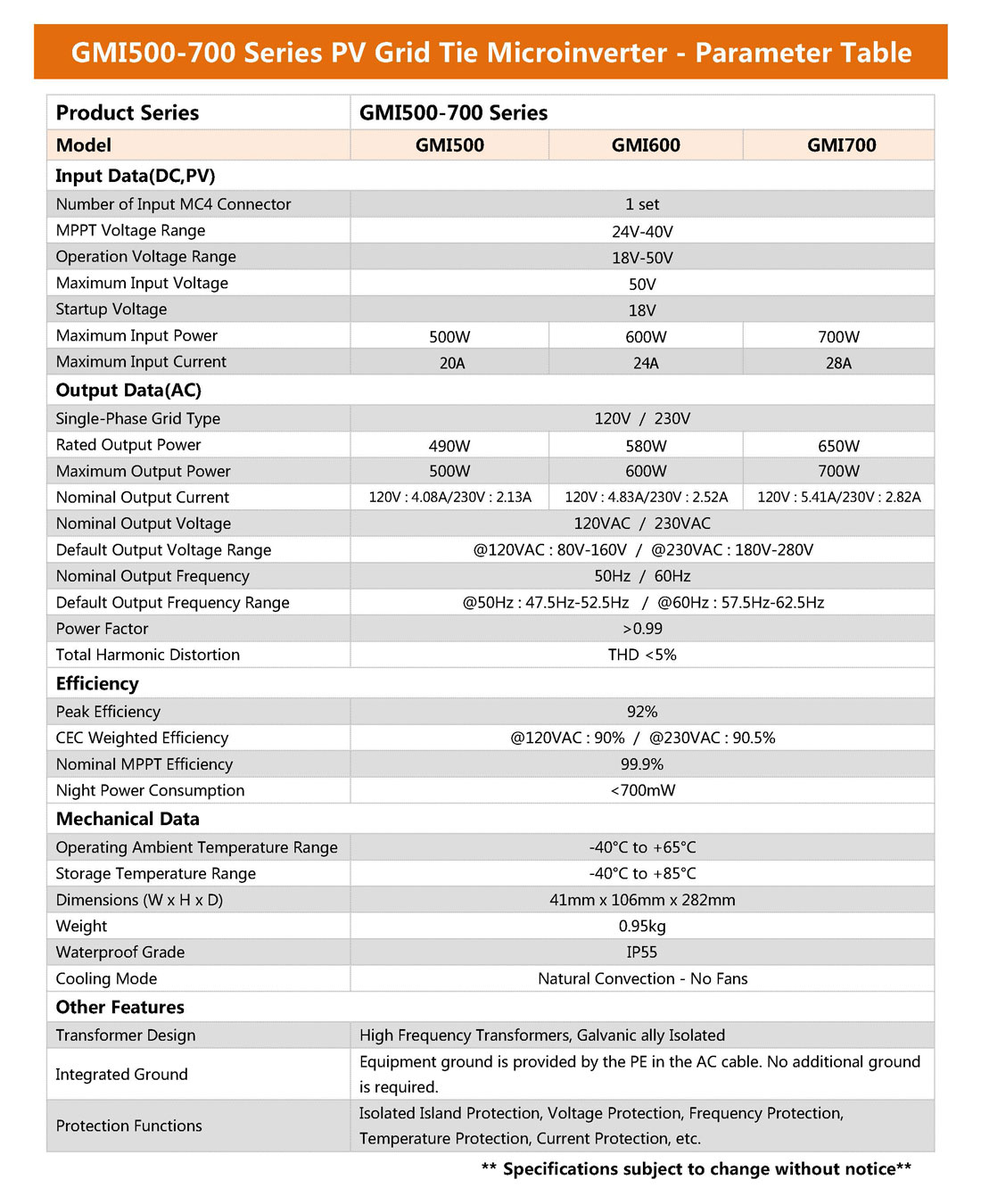 GMI500 Microinverter 500W Micro Inverter Grid Tie Single-Phase Output Flexible 3-Phase PV Systems