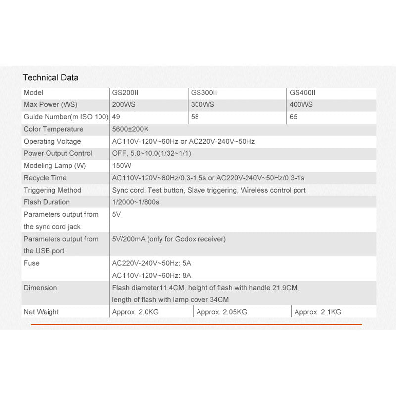 With built-in Godox wireless X system, GSII series studio flash offers build quality, fine control on flash power, and stable flash output. Fit wide-range light shaping accessories in the market. It is a desirable lighting source for professional photographers to realize creative lighting effects in various subjects of photography.