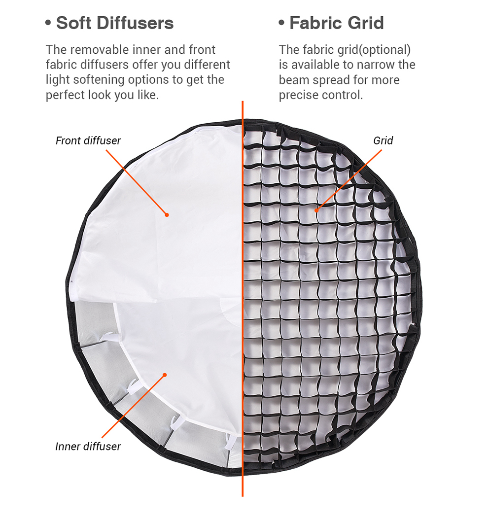 Godox QR-P90 Quick Release Parabolic Softbox 90CM/35.4" For Bowens Mount Studio Flash Photography