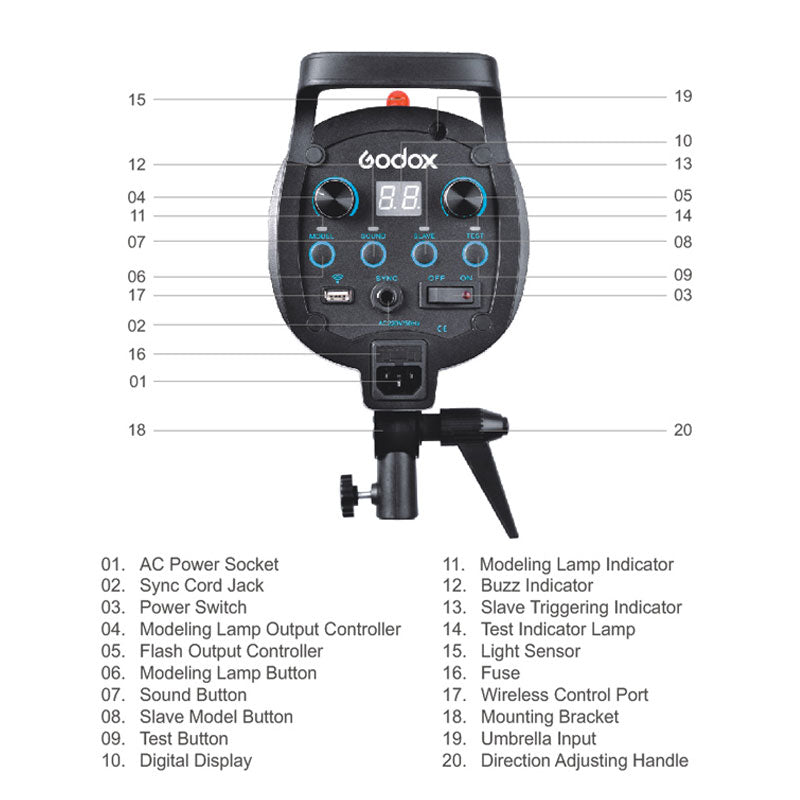 Godox QS-1200 QS1200 220V Studio Flash Photo Strobe Light 1200Ws Monolight Flash High Duration
