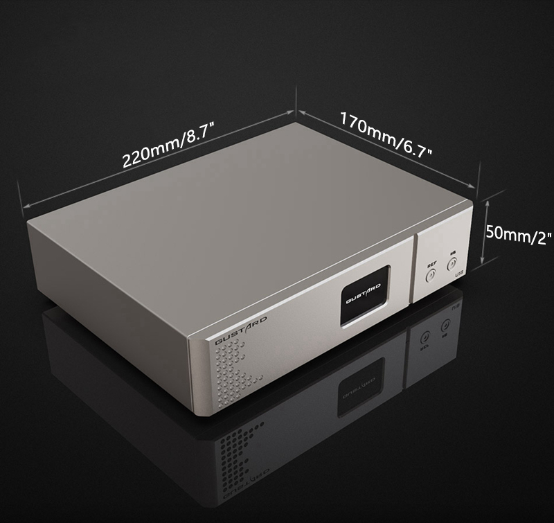- K2 ultra-low-noise clock synthesis technology: GUSTARD's second-generation ultra-low-noise clock synthesis technology, it can be connected to a constant temperature clock with a frequency of 10M. The K2 clock module can synthesize the 10M frequency with its extremely low loss into the main clock required by the audio
