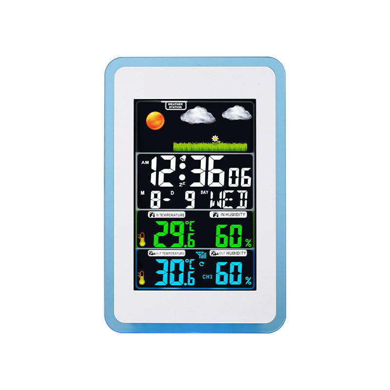 H173G 433MHz Wireless Weather Station Clock (White + Blue Transparent Frame) with Vertical Display