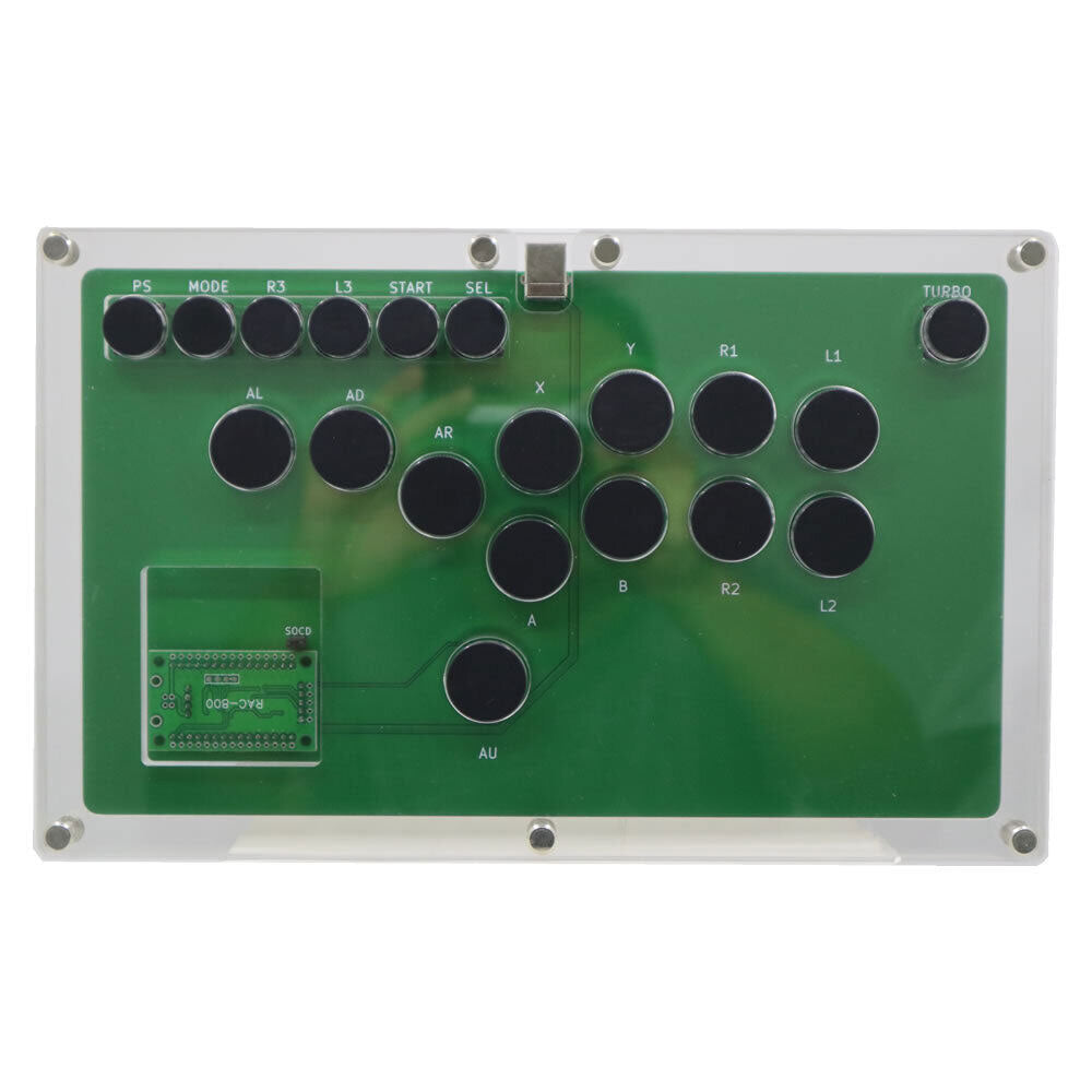 HAMGEEK HG-W003 is using all-acrylic ultra-thin design. Its thickness is less than 2cm/0.8", and the layered structure allows users to place their own artwork paper on the panel. It has 4x24mm/0.2x0.9" buttons (Black switches for Cherry MX) on the left side of the controller, instead of the traditional analog joystick, with 8x24mm/0.3x0.9" buttons (Black switches for Cherry MX) for the action buttons on the right side of the controller. Using hot-swappable technology, it is convenient for users to replace their favorite mechanical key switches. The HAMGEEK HG-W003 can be used for PC/Android by using Zero Delay Arcade USB Encoder.
